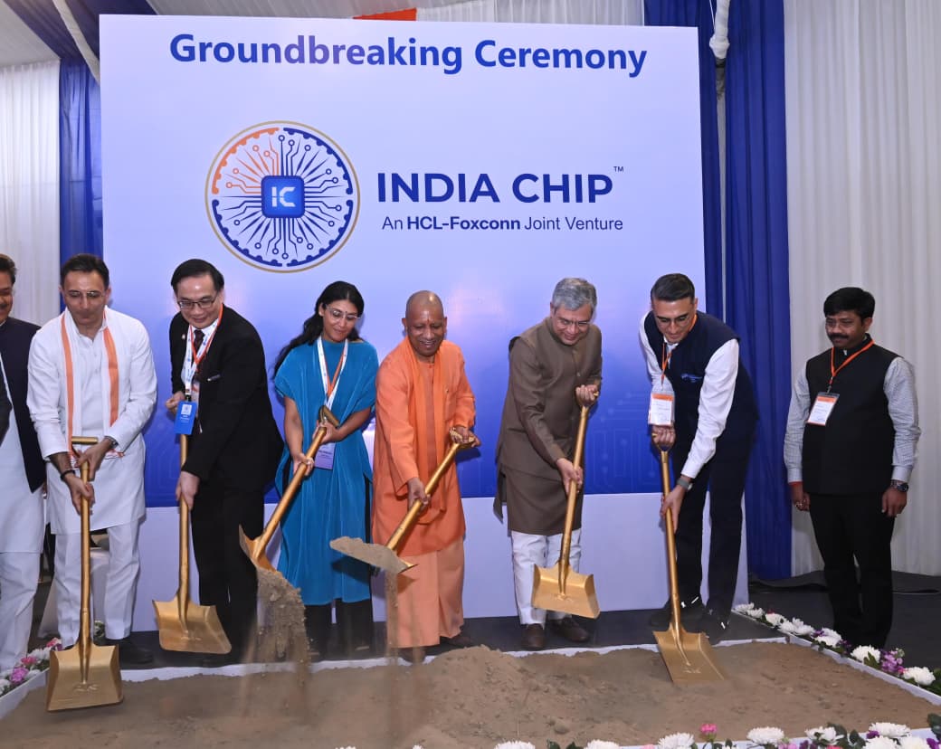 जेवर (ग्रेटर नोएडा) में शनिवार को एचसीएल और फॉक्सकॉन के संयुक्त उपक्रम के अंतर्गत प्रथम डिस्प्ले ड्राइवर सेमीकंडक्टर ओसैट यूनिट के शिलान्यास