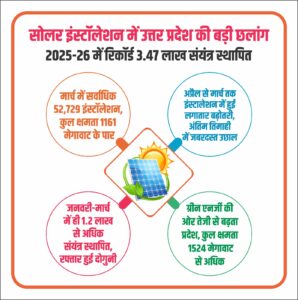 सोलर इंस्टॉलेशन में उत्तर प्रदेश की बड़ी छलांग, 2025-26 में रिकॉर्ड 3.47 लाख संयंत्र स्थापित