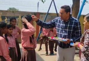 स्कूल चलो अभियान के तहत बच्चों को चंदन टीका के साथ माला पहनाकर किया गया स्वागत