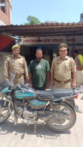 आज दिनांक 05.04.2026 को थाना मिर्जामुराद के उ0नि0 संदीप कुमार सिंह एवं उ0नि0 अविनाश कुमार सिंह तथा उनकी पुलिस टीम द्वारा ऑपरेशन चक्रव्यूह अभियान के अंतर्गत क्षेत्र में संदिग्ध व्यक्ति/वाहन चेकिंग तथा वारंटी एवं वांछित अभियुक्तों की तलाश के दौरान मुखबिर की सूचना पर मिर्जामुराद स्थित सम्मो माता मंदिर नहर के पास से अभियुक्त धनंजय सिंह पुत्र महेंद्र सिंह, निवासी ग्राम सत्तनपुर, थाना जंसा, जनपद वाराणसी, उम्र लगभग 40 वर्ष को चोरी की एक अदद मोटरसाइकिल के साथ गिरफ्तार किया गया।