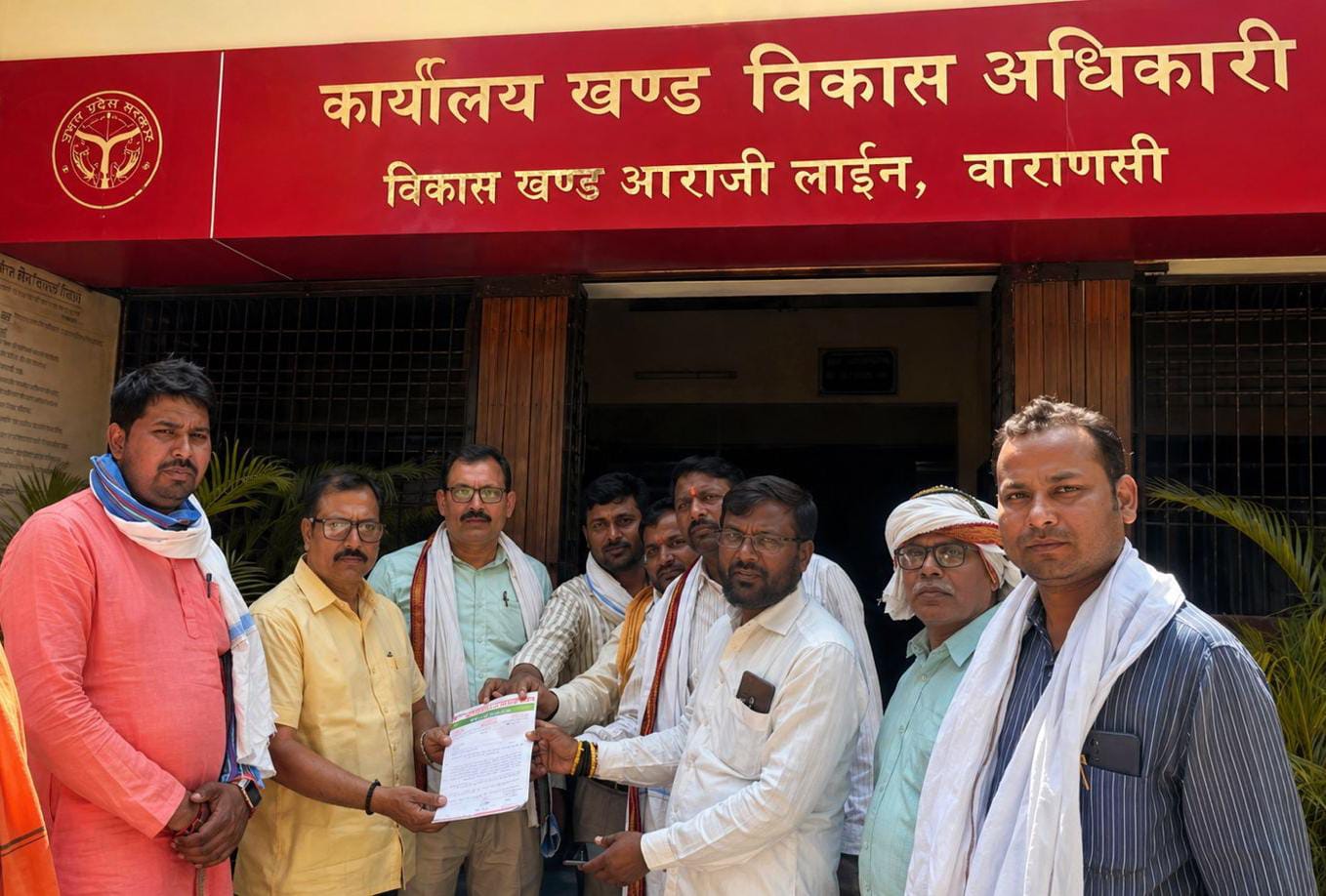 राजातालाब।आराजी लाइन ब्लॉक मुख्यालय पर शनिवार को प्रधान संघ अध्यक्ष मुकेश पटेल के नेतृत्व में राष्ट्रीय पंचायती राज ग्राम प्रधान संगठन आराजी लाइंस वाराणसी इकाई के प्रधानों के प्रतिनिधिमंडल ने ग्राम पंचायतों का चुनाव 26 मई 2026 से पूर्व न सम्पन्न होने की दशा में वर्तमान ग्राम-प्रधान को ही ग्राम पंचायतों का संचालन करने का अधिकार दिये जाने तथा ग्राम पंचायतों में पन्द्रहवां वित्त, राज्य वित्त तथा अन्य शासकीय योजनाओं से एवं मनरेगा द्वारा कराये गये सभी कार्यों के भुगतान 26 मई से पूर्व कराने के सम्बन्ध में जिलाधिकारी वाराणसी के माध्यम से मुख्यमंत्री के नाम एडीओ आईएसबी दीपक शर्मा को ज्ञापन सौपा।प्रधान संघ अध्यक्ष मुकेश पटेल ने मुख्यमंत्री जी से अनुरोध करते हुए बताया कि सोशल मीडिया, समाचार पत्रों तथा टीवी चैनलों आदि के माध्यम से आ रही सूचना से यह स्पष्ट हो गया है कि जहाँ ग्राम पंचायतों का कार्यकाल 26 मई 2026 को पूर्ण हो रहा है वहीं निकट भविष्य में ग्राम पंचायतों के चुनाव की कोई सम्भावना नहीं दिखाई दे रही है जिसके कारण ग्राम पंचायतों का कार्यकाल आगे बढ़ने की सम्भावना है। ऐसी परिस्थिति में आगे भी ग्राम पंचायतों के संचालन का अधिकार वर्तमान ग्राम प्रधान को ही दिया जाय जो संविधान के अनुरूप है।ऐसा ही उदाहरण राजस्थान, मध्य प्रदेश तथा उत्तराखण्ड से भी मिल रहा है तथा उत्तर प्रदेश में भी वर्ष 2010 के पंचायत चुनाव में देरी होने के फलस्वरूप ग्राम प्रधान को ही उ0प्र0 सरकार द्वारा प्रशासक बनाया गया था।
