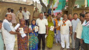 रोहनिया।विधान परिषद सदस्य एवं भाजपा जिला अध्यक्ष हंसराज विश्वकर्मा ने पार्टी के पदाधिकारियो व कार्यकर्ताओं के साथ रविवार को रोहनिया विधानसभा के कर्दमेश्वर मंडल के शक्ति केंद्र कंचनपुर के बूथ संख्या 185 पर रेडियो पर प्रसारित प्रधानमंत्री जी के मन की बात के कार्यक्रम को सुनी।उसके उपरांत नारी शक्ति को समर्पित काशी के लोकप्रिय सांसद व यशस्वी प्रधानमंत्री नरेन्द्र मोदी जी के विशाल महिला सम्मेलन कार्यक्रम में अधिक से अधिक संख्या में पहुंचने हेतु घर-घर जाकर जनसंपर्क कर आमंत्रण पत्र वितरण किया।इस दौरान प्रमुख रूप से सदस्य विधान परिषद व भाजपा जिलाध्यक्ष हंसराज विश्वकर्मा,पार्षद प्रतिनिधि गोपाल पटेल,मंडल अध्यक्ष जय प्रकाश सिंह पटेल,जितेंद्र केशरी,कमलेश पाल ,मिश्री लाल गिरी,विहारी पटेल,नन्द लाल,सूर्यबली केशरी,किसान मोर्चा के मंडल अध्यक्ष राकेश गिरी ,अनिल सिंह आदि प्रमुख कार्यकर्ता एवं पदाधिकारी गण शामिल रहे।
