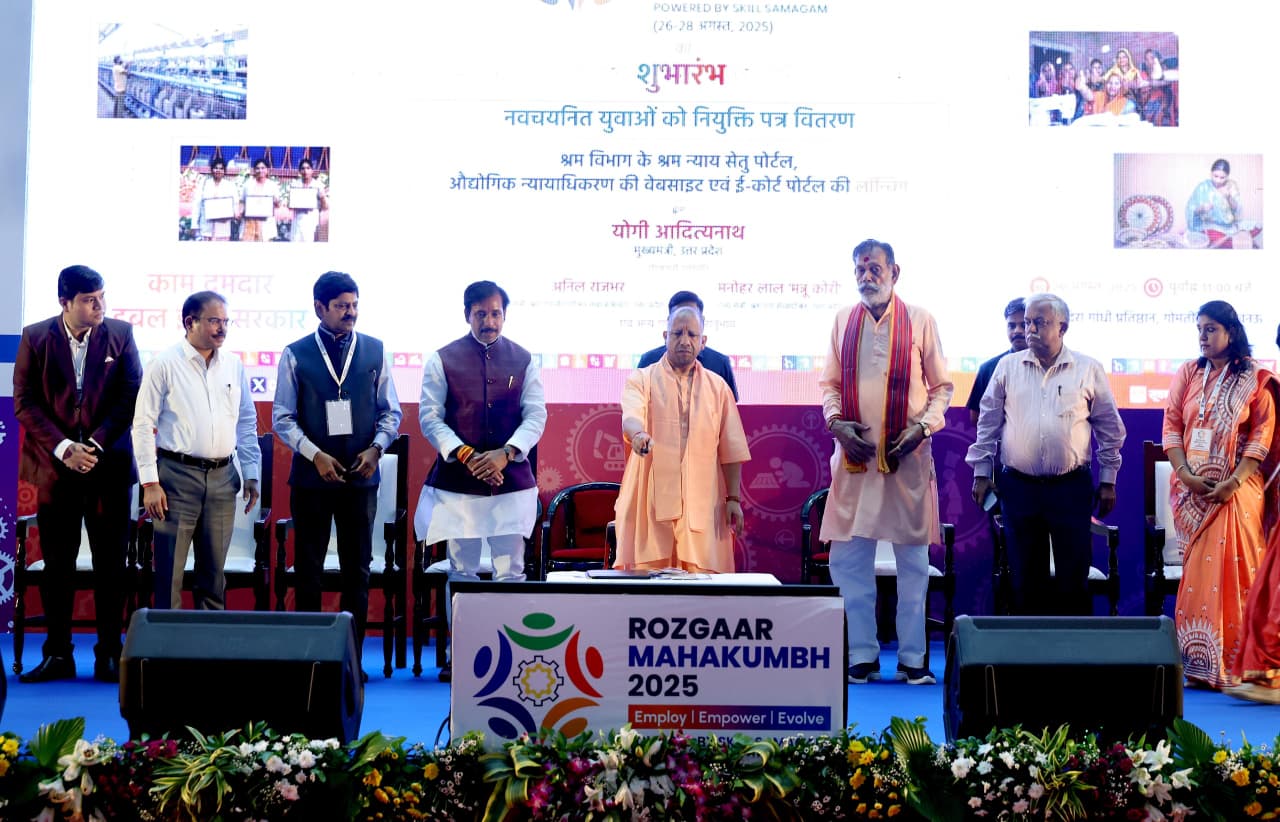 मुख्यमंत्री योगी आदित्यनाथ लखनऊ में आयोजित तीन दिवसीय “रोजगार महाकुंभ 2025” का शुभारंभ किया। इस अवसर पर कार्यक्रम को संबोधित करते हुए उन्होंने कहा कि उत्तर प्रदेश देश का पहला ऐसा राज्य बन रहा है, जहां काम करने वाले हर युवा को न्यूनतम मजदूरी और न्यूनतम वेतन की गारंटी सुनिश्चित की जा रही है। मुख्यमंत्री ने युवाओं को अपार ऊर्जा का स्रोत बताते हुए कहा कि उत्तर प्रदेश की सबसे बड़ी युवा आबादी इस राज्य के लिए सौभाग्य है। उन्होंने कहा कि आज यूपी की प्रतिभा की मांग देश-दुनिया में हो रही है, और जो प्रदेश कभी रोजगार के लिए पलायन का दंश झेलता था, आज वही रोजगार उपलब्ध करा रहा है।