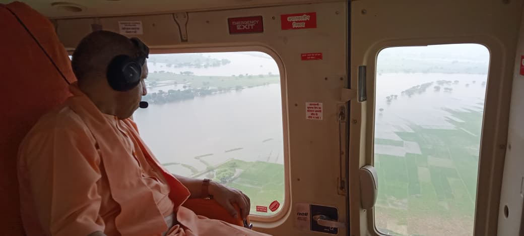 मुख्यमंत्री ने गाजीपुर में किया बाढ़ का हवाई सर्वे