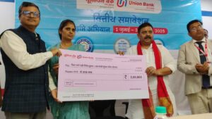 मंत्री ने जनधन खाते के मृत खातेदारों के वारिसों को खाते पर हुए बीमा की राशि का चेक दिया