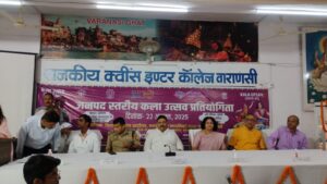 वाराणसी। उत्तर प्रदेश के स्टांप एवं न्यायालय पंजीयन शुल्क राज्य मंत्री स्वतंत्र प्रभार रविन्द्र जायसवाल ने शुक्रवार को क्वींस कॉलेज में जनपद स्तरीय कला उत्सव प्रतियोगिता का शुभारंभ किया। उन्होंने उपस्थित विद्यार्थियों एवं शिक्षकों से अपेक्षा करते हुए कहा कि सभी को अपने कार्य में नवाचार करने की आवश्यकता है। वाराणसी कला एवं साहित्य का केंद्र है, यहां की कला एवं कलाकार देश एवं दुनिया में प्रसिद्धि प्राप्त हैं। कार्यक्रम में प्रमुख रूप से प्रधानाचार्य सुमित श्रीवास्तव एवं अन्य अधिकारी उपस्थित थे।