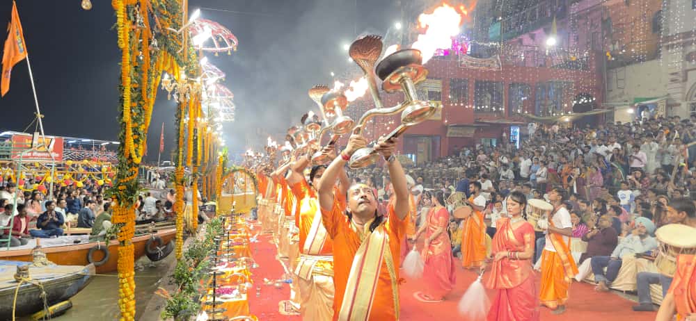 कार्तिक मास की पूर्णिमा पर काशी की अद्भुत, अलौकिक और दिव्य देव दीपावली ने प्राचीन दशाश्वमेध घाट पर गंगोत्री सेवा समिति के तत्वावधान में अपनी स्वर्णिम आभा बिखेरी । शाम ढलते ही गोधूलि बेला में दीपों की दपदप, विद्युत झालरों की जगमग, सुरों की खनक, गीत संगीत की धमक तो गगनचुंबी आतिशबाजी की चमक, फूलों की सुवास तो कहीं चटकीले रंगों का वास प्राचीन दशाश्वमेध घाट पर यह सभी आकर्षण का केंद्र रहे । पहलगाम हमले में शहीद भारतीयों को श्रद्धांजलि और ऑपरेशन सिंदूर के शूरवीरों को समर्पित मां गंगा की अलौकिक आरती देश-विदेश से आए पर्यटकों के दिलों को छू गई। देवताओं के स्वागत में ब्राम्हणों के श्लोक के साथ ” हर हर महादेव‘- हर-हर गंगे ” के महाजाप से माता शीतला का प्रांगण गूंज उठा।