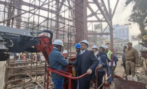 वाराणसी। निर्माणाधीन रोपवे परियोजना की प्रगति का जायजा लेने मंडलायुक्त एस राजलिंगम गोदौलिया पहुँचे जहां उन्होंने स्टेशन का स्थलीय निरीक्षण किया, इस दौरान उन्होंने यात्रियों की सुविधा और सुरक्षा के सभी पहलुओं का बारीकी से जायज़ा लिया। मंडलायुक्त द्वारा परियोजना की प्रगति और गुणवत्ता की समीक्षा की गयी जिसमें उन्होंने अधिकारियों को निर्देश दिए कि परियोजना को समय पर और गुणवत्ता के साथ पूरा किया जाए।