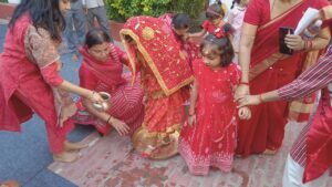 कन्याओं का पूजन करने वाले अत्यंत हर्षित एवं संवेदनषील रहे। इस अवसर पर छात्राओं द्वारा माता के भजन की प्रस्तुति की गई। इस अवसर पर देवी स्वरूपा सभी कन्याएं हर्षित एवं प्रसन्न थीं। कार्यक्रम में प्रधानाचार्या नीति जायसवाल, उप निदेशिका स्मृति साह, सहायक निर्देशिका सलोनी शाह, उप प्रबंधक डॉ अभिनव भट्ट, विद्यालय समन्वयक रत्नेश गोविंद सहित सभी शिक्षक, शिक्षिकाएं, कर्मचारियों ने भी कन्याओं का मंगल तिलक व मौली बांधकर वंदन किया। इसी के साथ कन्या पूजन कार्यक्रम हेतु कई सम्मानित व गणमान्य अतिथि तथा अभिभावकगण भी उपस्थित थे।